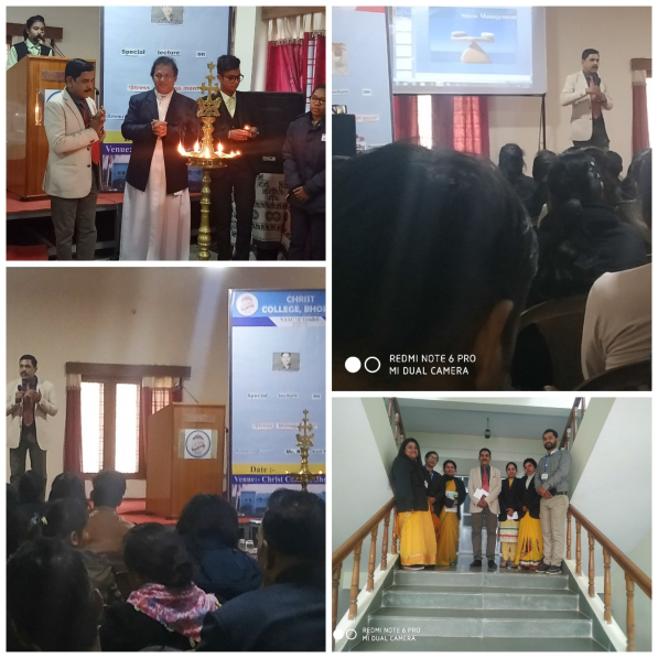 A workshop on Stress Management was organized on 21 January 2020. The speaker on the occasion was Mr. Ritu Kant Sinha, a Presidents award recipient from M.P. Police. The participants included students from various nearby schools, students of B.A., B.Com. B.Ed., M.Ed. and the teaching and non-teaching staff of the schools and our college. The objective of the workshop was to help students and teachers manage academic and non-academic stress and to adopt various measures and precautions to deal with stress. The program coordinator was Dr. Pallavi Shrivastava. At the end of the session the guest was felicitated with a memento.